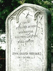 저는 이 표현을 세상에서 가장 멋지고 효과적인 잔소리라고 생각합니다. 조지 버나드 쇼라는 작가는 누구보다 치열하게 살았을 것입니다. 그러니 노벨 문학상을 수상했을 것입니다. 물론 그의 인생에 대한 비판의 목소리도 분명 있습니다만, 그의 묘비명처럼 허송 세월 보내며 대충 살다간 인물은 분명 아닐 것입니다. 그럼에도 그는 더 열심히 살지 못한 것에 대한 회한이 담겨 있고 유머를 적절히 섞을 줄 아는 여유로움도 가졌습니다. 저는 매장보다 화장을 선호하는 편이라서 묘비는 따로 준비할 필요는 없겠지만, 그래도 묘비에 적을 만큼 인생과 세상을 통찰하는 멋진 표현 하나는 남기고 싶은 욕심이 있습니다. 아직 생각해 둔 표현이 없는 40대 후반이니 좀 더 책을 읽고 내공을 쌓은 후에 만들어 볼 생각입니다. 저도 조지 버나드 쇼처럼 반드시 유머를 섞을 생각입니다. 그래야 오래도록, 그리고 널리 회자될 것이기 때문입니다.