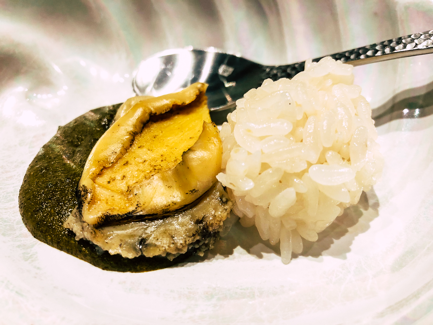 다음은 전복과 전복 내장이 밥과 함께 나왔는데 너무 맛있어서 감탄사가 입에서 저절로 나왔어요.