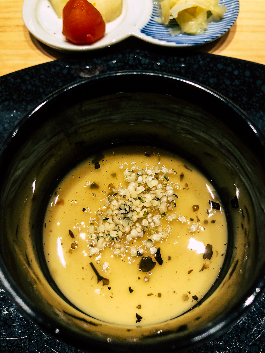 가장 먼저 식전 죽이 나왔는데 정확히 죽은 아니고 달걀찜 같은 건데 맛이 기가 막혔습니다.