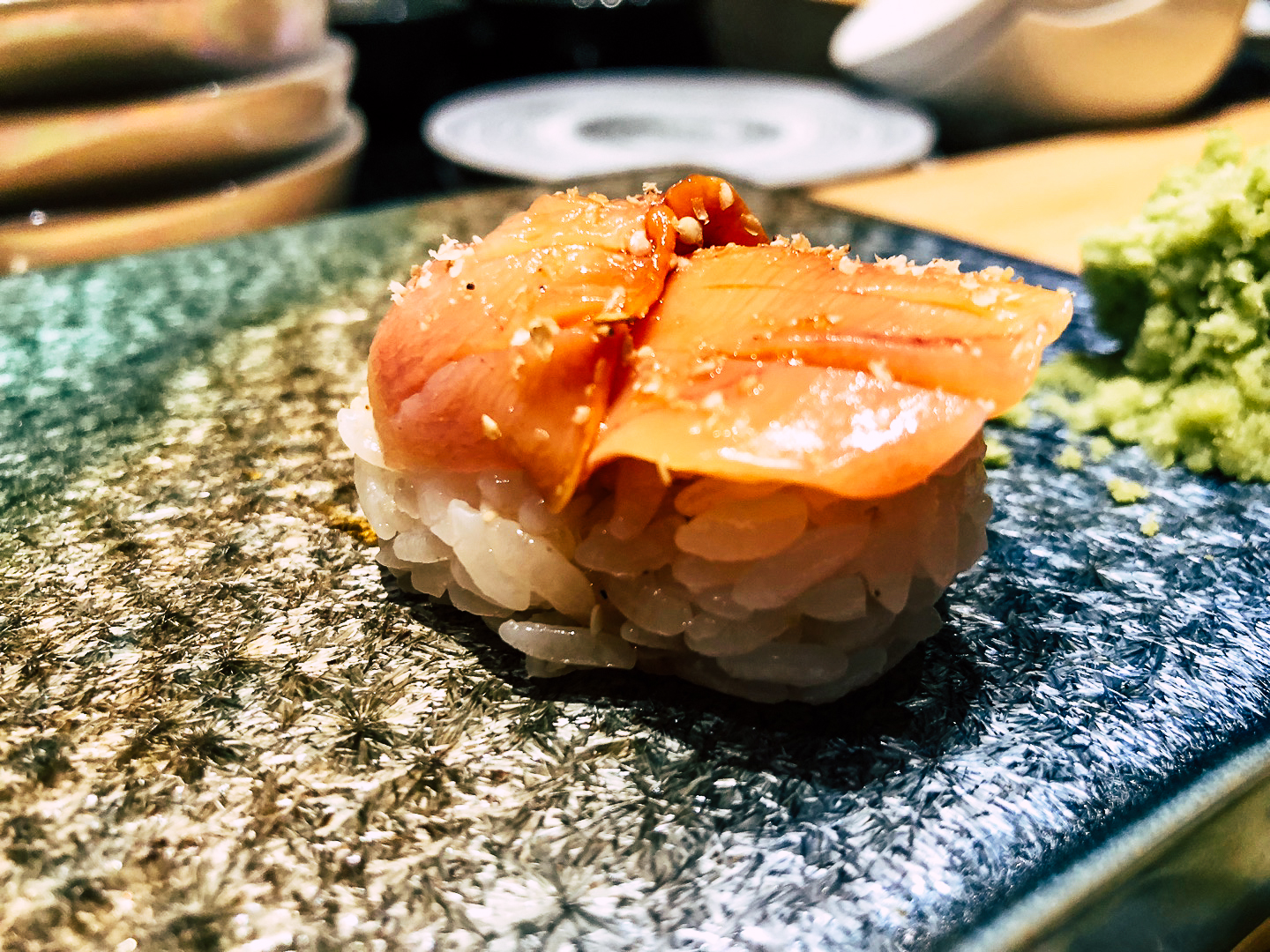 드디어 본격적으로 스시 (초밥)가 나오기 시작했습니다. 이미 배는 1/3 정도 찬 상태에서 스시가 나오기 시작하니까 참고하셔야 해요.