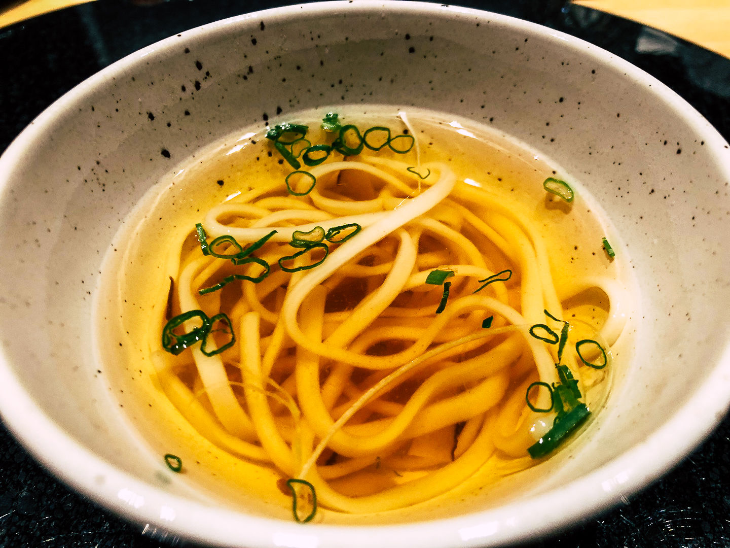 장어까지 먹고 나니까 드디어 메인 요리가 끝이 나고 식후 우동과 디저트만 남았습니다.
