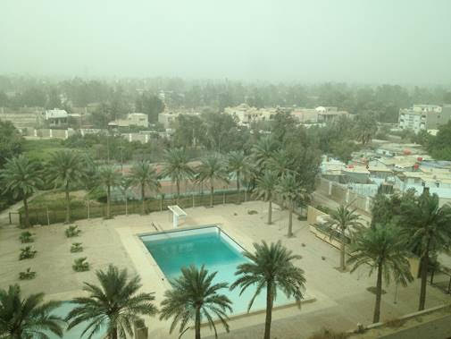 영화에서나 보던 이국적인 모습이다. 아침에 찍은 사진들이고 뿌옇게 나왔는데 처음에는 안개인줄 알았더니 모래폭풍이라고 한다. 호텔에서 늦은 점심을 먹었지만 오느라 고생했다며 이라크 정부에서 회의 전에 만찬을 준비했다고 해서 배가 안 꺼진 상태에서 또 먹었다. 공짜는 무조건 먹어야 한다.
