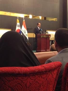 경호원들이 하도 경호를 엄하게 해서 가까이에서 찍지 못했지만 그래도 한 나라의 총리를 이렇게 가까이서 볼 수 있다니 신기해서 멀리서나마 한 장 남겼다. 잘 모르겠다고? 부시 미국 전 대통령이 방문했을 때 기자의 신발 투척 사건을 기억할 것이다. 그때 바로 옆에 서있던 사람이 바로 저 사람이다. 사실 나도 잘 모르니 이렇게 안 좋은 기억밖에 없어 좀 미안하다. 우리가 머물던 당시는 이라크 지방 선거 유세 기간이어서 온통 거리는 선거 벽보가 붙어 있었고, 이 때문에 모든 언론들이 총리의 일거수일투족을 취재하기 위해 따라다녔다. 덕분에 우리들 모습이 그날 밤 이라크 뉴스에 총리의 일일 행적으로 편집되어 나왔다.