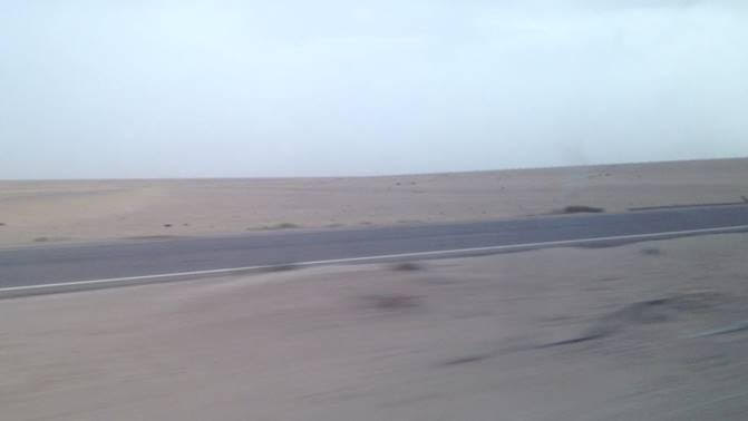 동영상을 캡쳐해서 해상도가 좋지 못하지만 정말 모래 이외에는 아무것도 없는 사막 그 자체다. (첨언 : 사막에 낙타도 보이고 중간중간 민가들도 있긴 하지만 대부분 심심한 풍경 밖에 볼 것이 없었습니다. 고저차도 거의 없고 처음부터 끝까지 평평했습니다.)