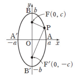 여기서 주의할 점은 왼쪽이든 오른쪽이든 타원의 방정식은 변하지 않는다는 점입니다. 그리고 타원 위의 임의의 점 P에서 초점까지의 거리의 합은 장축의 길이와 항상 같습니다. 즉, PF + PF' = 2a (왼쪽) 또는 2b (오른쪽)가 성립해야 합니다. 이것만 알면 타원 문제는 풀 수 있습니다.