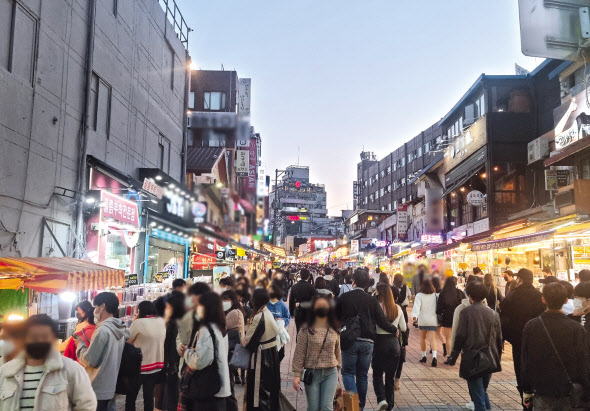 가장 최근에 갔을 때는 가족과 함께 홍대입구역 주변에 있는 박물관 구경을 마치고 홍대 거리를 걸으며 구경도 하고, 쇼핑도 하고, 맛집도 가고 했던 기억이 있습니다. 1년쯤 된 것 같은데, 그때는 코로나가 한창이어서 버스킹도 못하게 되어 있었고, 길거리에 사람이 별로 없었습니다. 그러다가 어두워지자 완전히 다른 세상이 되었습니다. 코로나라서 사람들이 없는 줄 알았더니 시간이 일러서 그랬던 모양이었습니다. 사람이 너무 많아서 홍대 거리를 저희 의지로 걸어가기 힘들 정도로 사람들이 많았습니다. 정말 얼마 만에 그렇게 많은 사람들 속에 있었는지 모르겠습니다. 저희 가족은 코로나가 무서워서 곧바로 인파 속에서 빠져나와 집으로 돌아갔었습니다.
