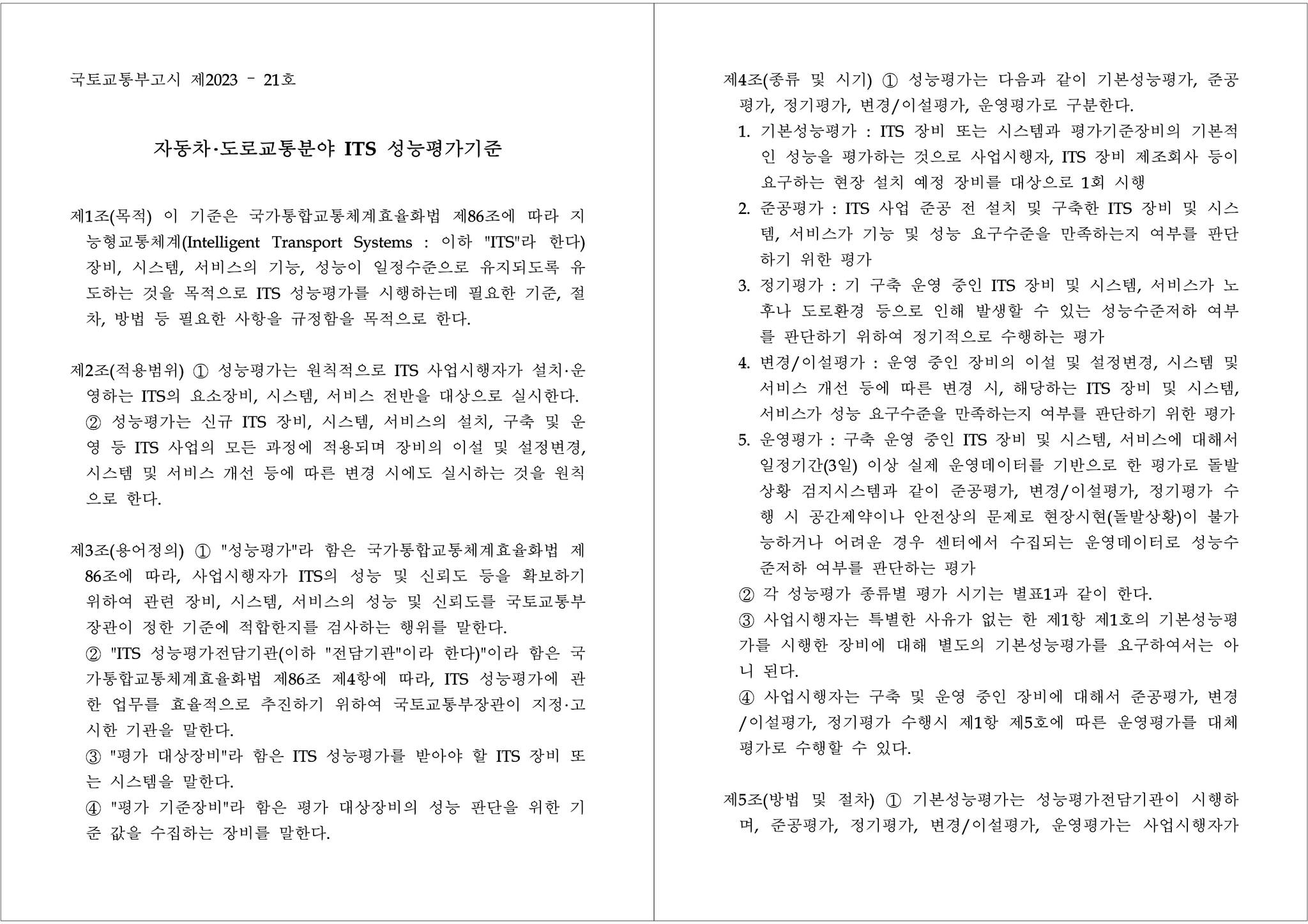 자료 다운로드 : (전문)자동차_도로교통분야_ITS_성능평가기준