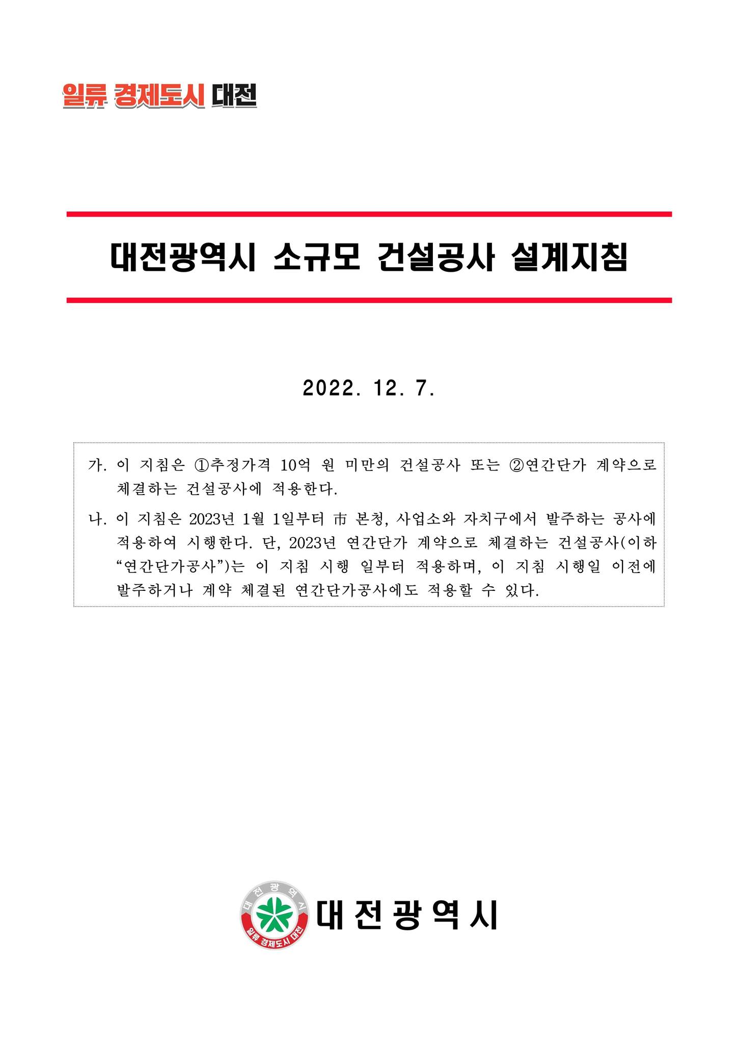 자료 다운로드 : 대전광역시 소규모 건설공사 설계지침(2022.12.7.시행)