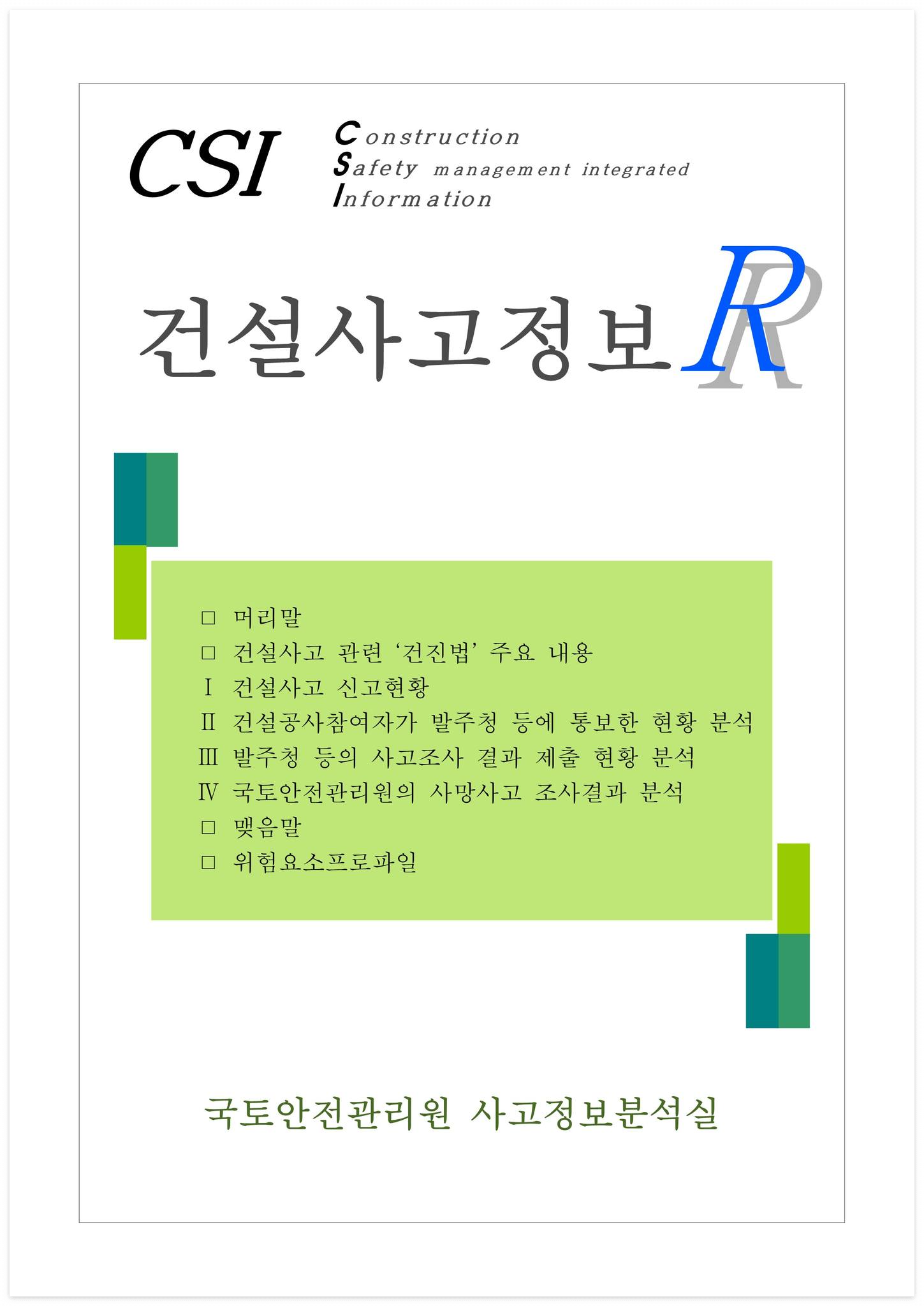 지난 ’19년 7월 개정된 “건설기술진흥법” 67조에 따라 건설공사참여자는 건설사고 발생 시 발주청 및 인‧허가기관(이하 “발주청 등”이라 한다)에게 통보하여야 하며, 발주청 등은 사고조사결과를 “건설공사 안전관리 종합정보망(이하 ”CSI“라 한다)에 입력하여 국토부장관에게 제출하도록 하고 있다.
