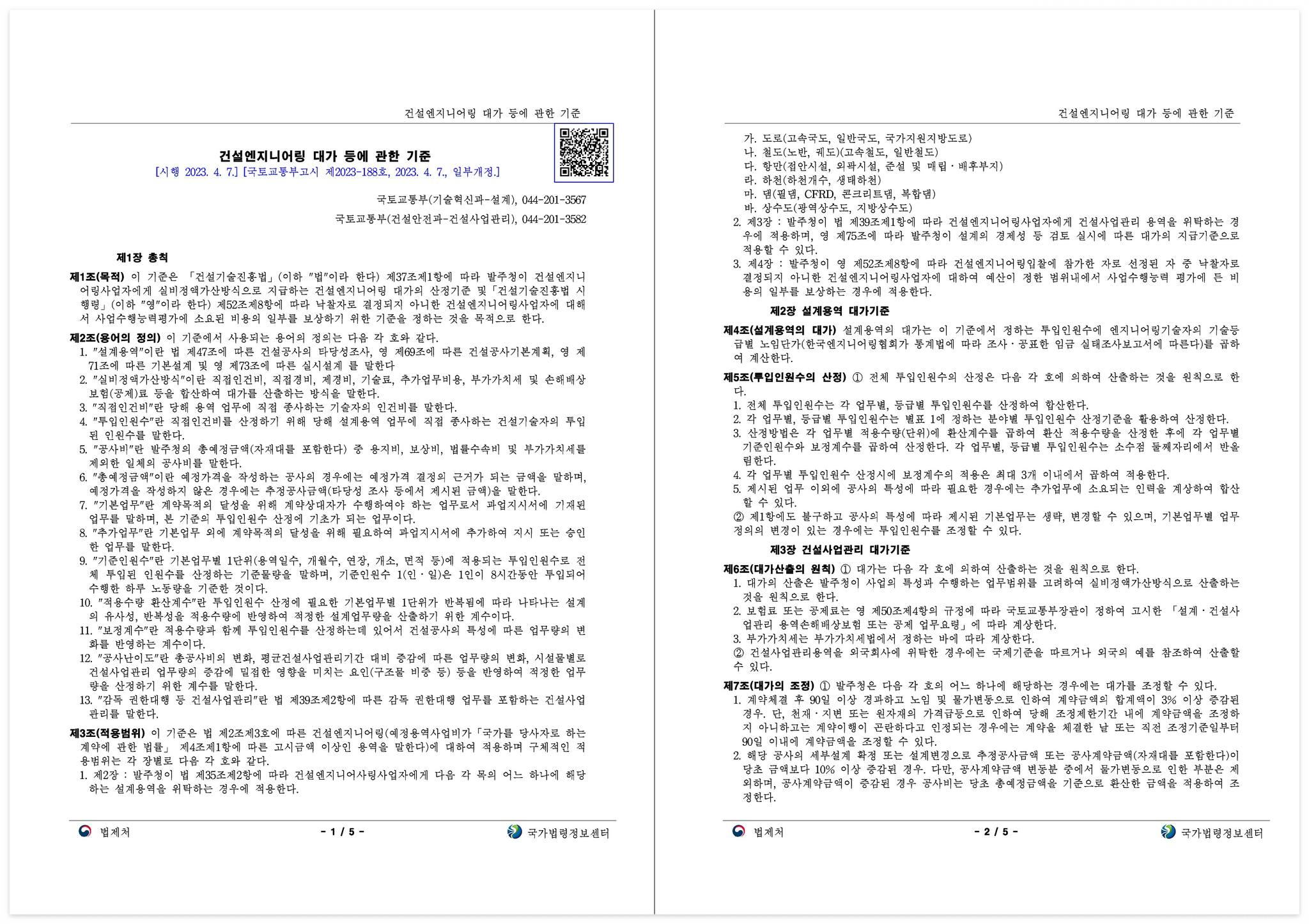 ※「건설엔지니어링 대가 등에 관한 기준」(국토교통부 고시 제2023-188호, ’23.4.7)