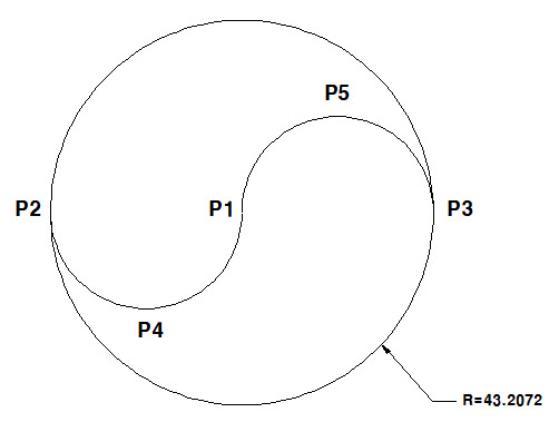 (command “circle” p1 43.2072) → 기본적인 circle 명령어 수행문으로 중심점과 반지름만을
