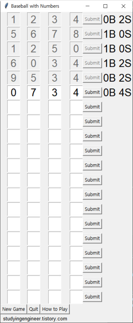 사랑하는 딸아이가 중학교 수업시간에 숫자 야구게임을 했다는 얘기를 듣고 “ChatGPT와 파이썬으로 한 번 만들어볼까?” 하는 생각이 들어 만들게 된 게임 두번째 버전입니다.