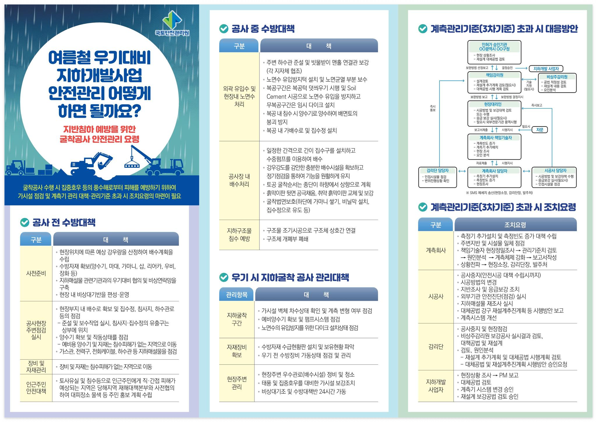 □ 제목 : 2023년 여름철 우기대비 지반침하 예방을 위한 굴착공사 안전관리 요령 리플릿