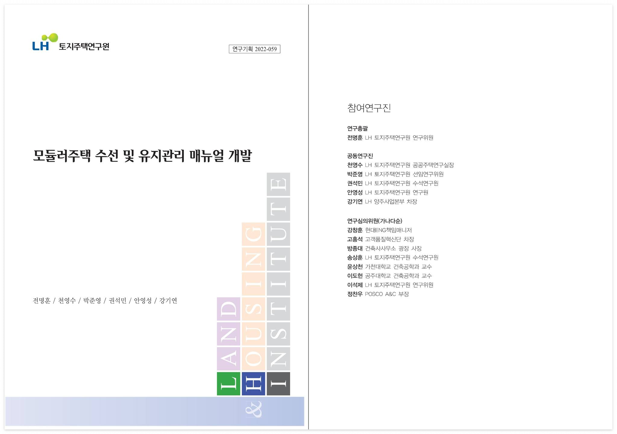 □ 제목 : 모듈러주택 수선 및 유지관리 매뉴얼 개발