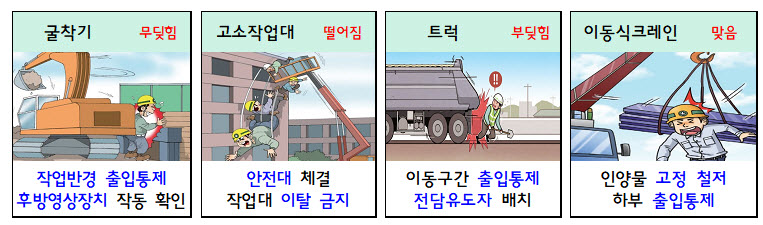 건설현장 사망사고 다발 4대 기계·장비는 반드시 숙지합니다.