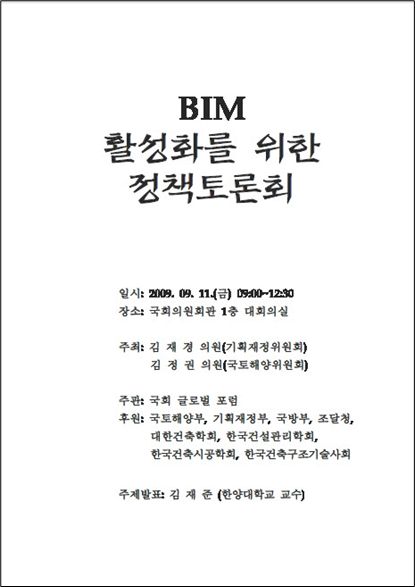 47. 국회 정책 토론회 - BIM 활성화를 위한 정책토론회
