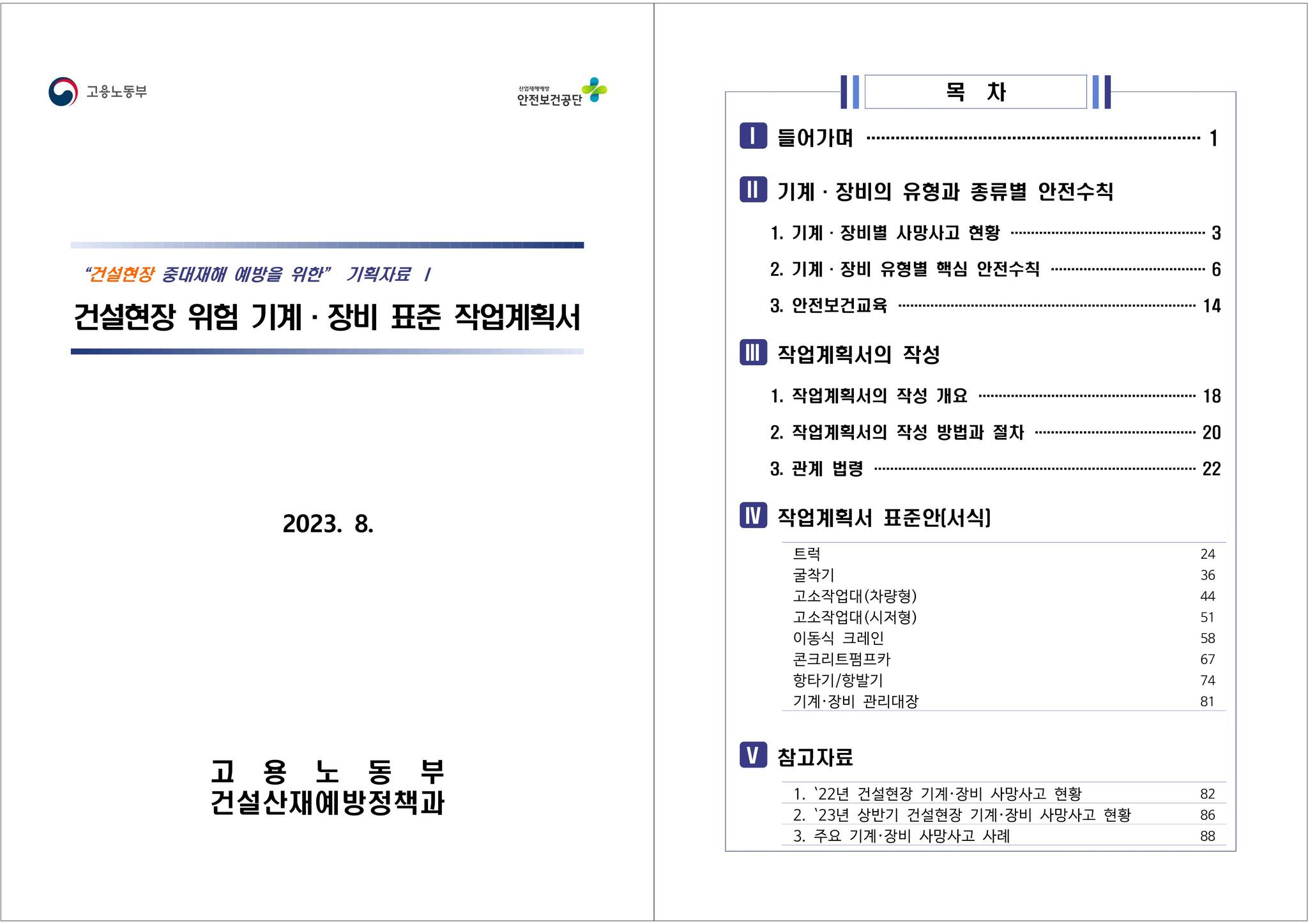 □ 제목 : 건설현장 위험 기계장비 표준 작업계획서
