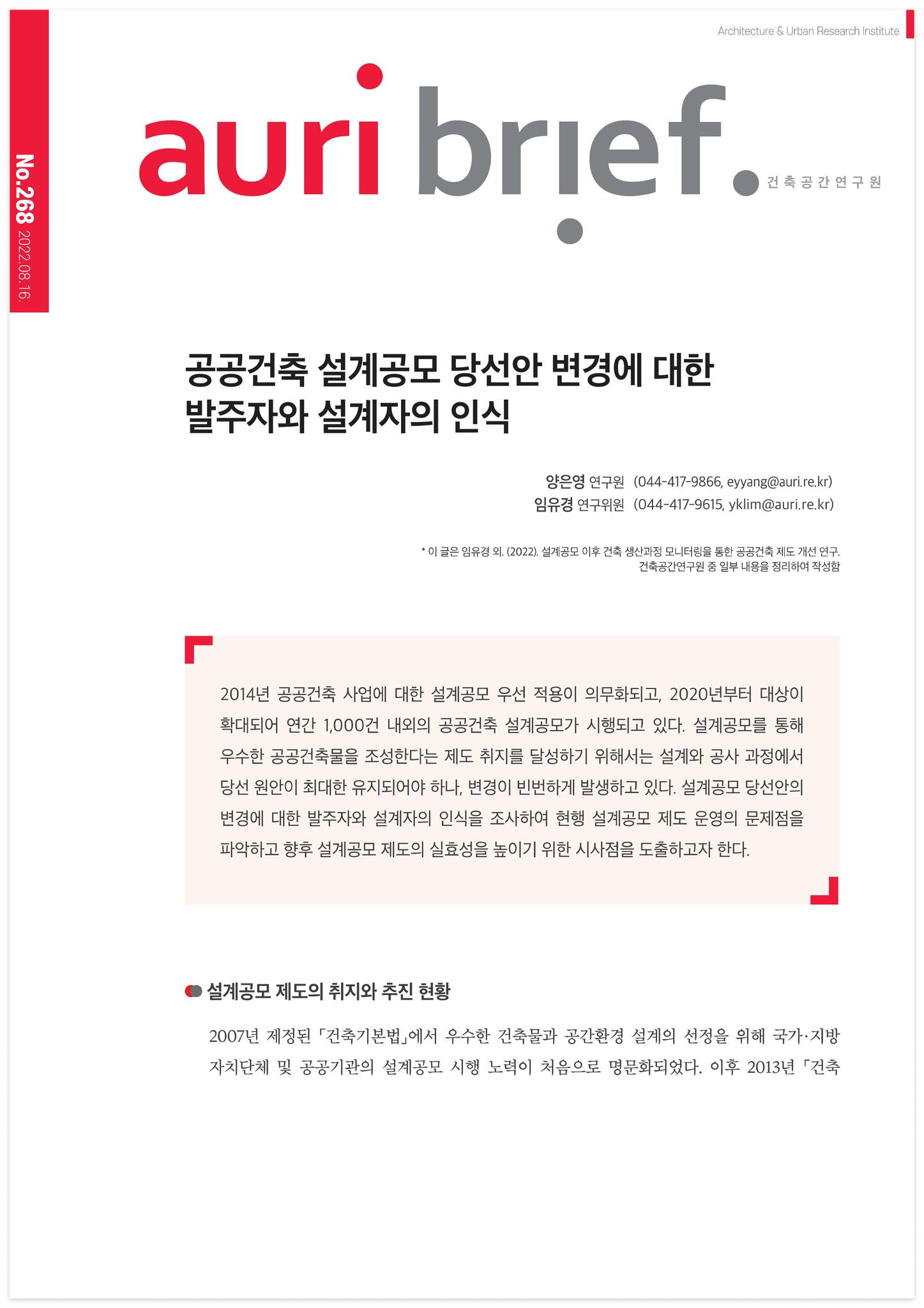 □ 자료 다운로드 : 268호_공공건축 설계공모 당선안 변경에 대한 발주자와 설계자의 인식(양은영, 임유경)