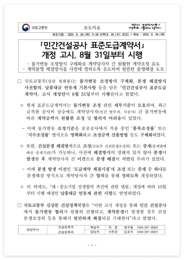 □ 자료 다운로드 : 230830(조간)_민간건설공사_표준도급계약서_개정_시행(건설정책과)