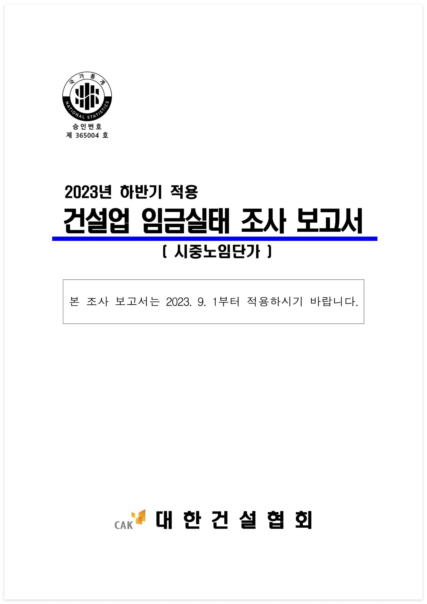 □ 제목 : 2023년 하반기 적용 건설업 임금실태 조사 보고서 (시중노임단가)