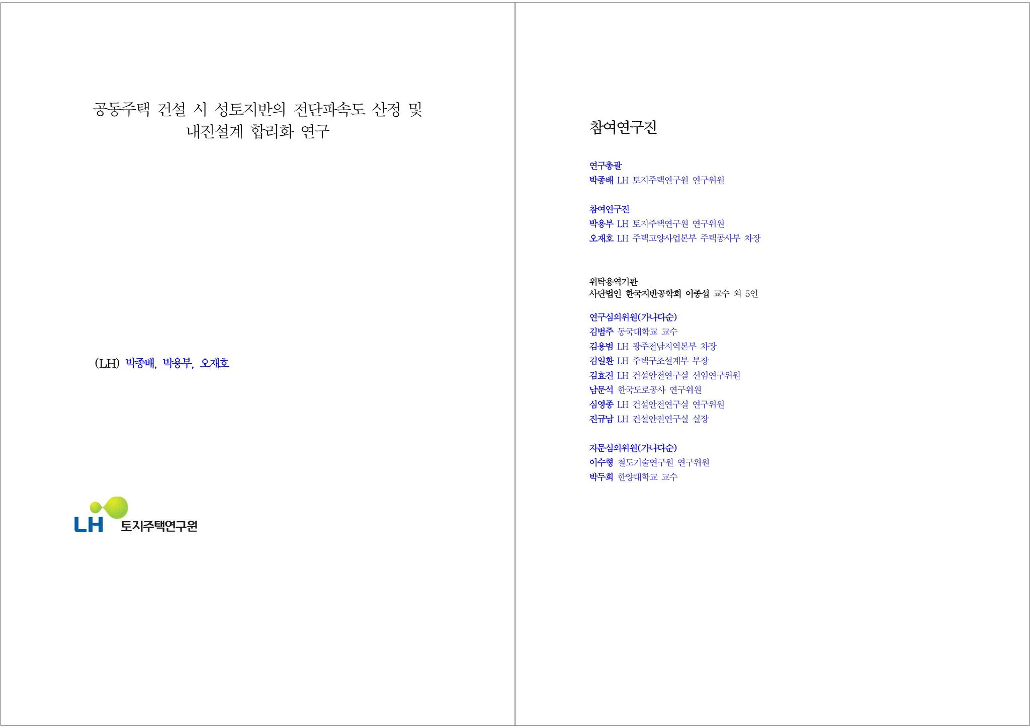 □ 제목 : 공동주택 건설 시 성토지반의 전단파속도 산정 및 내진설계 합리화 연구