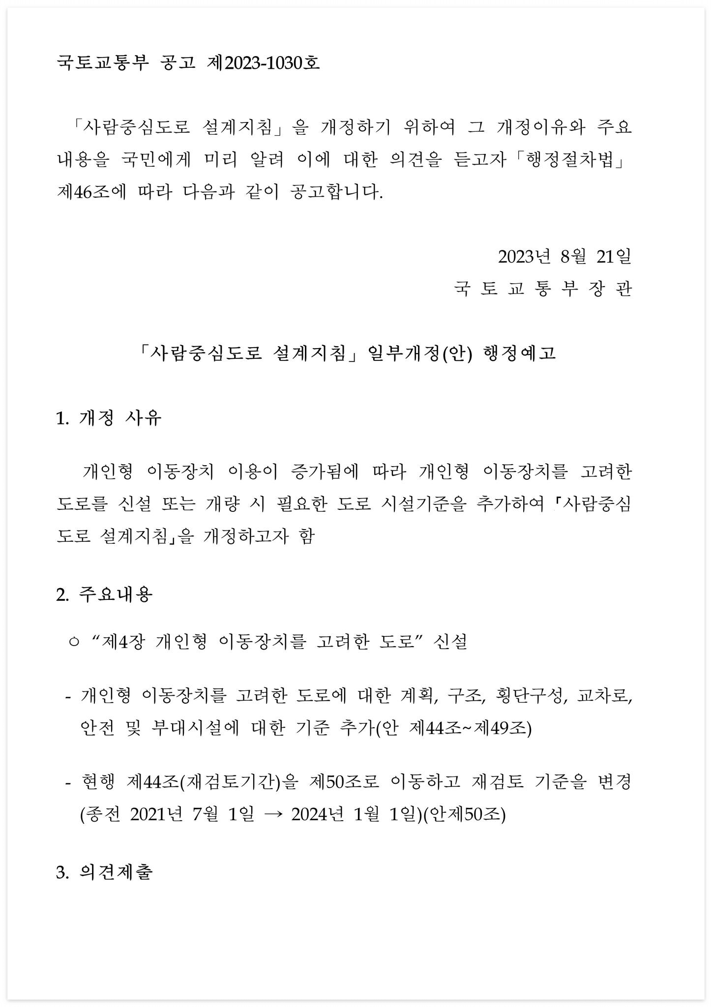 □ 문서 : 국토교통부 공고 제2023-1030호