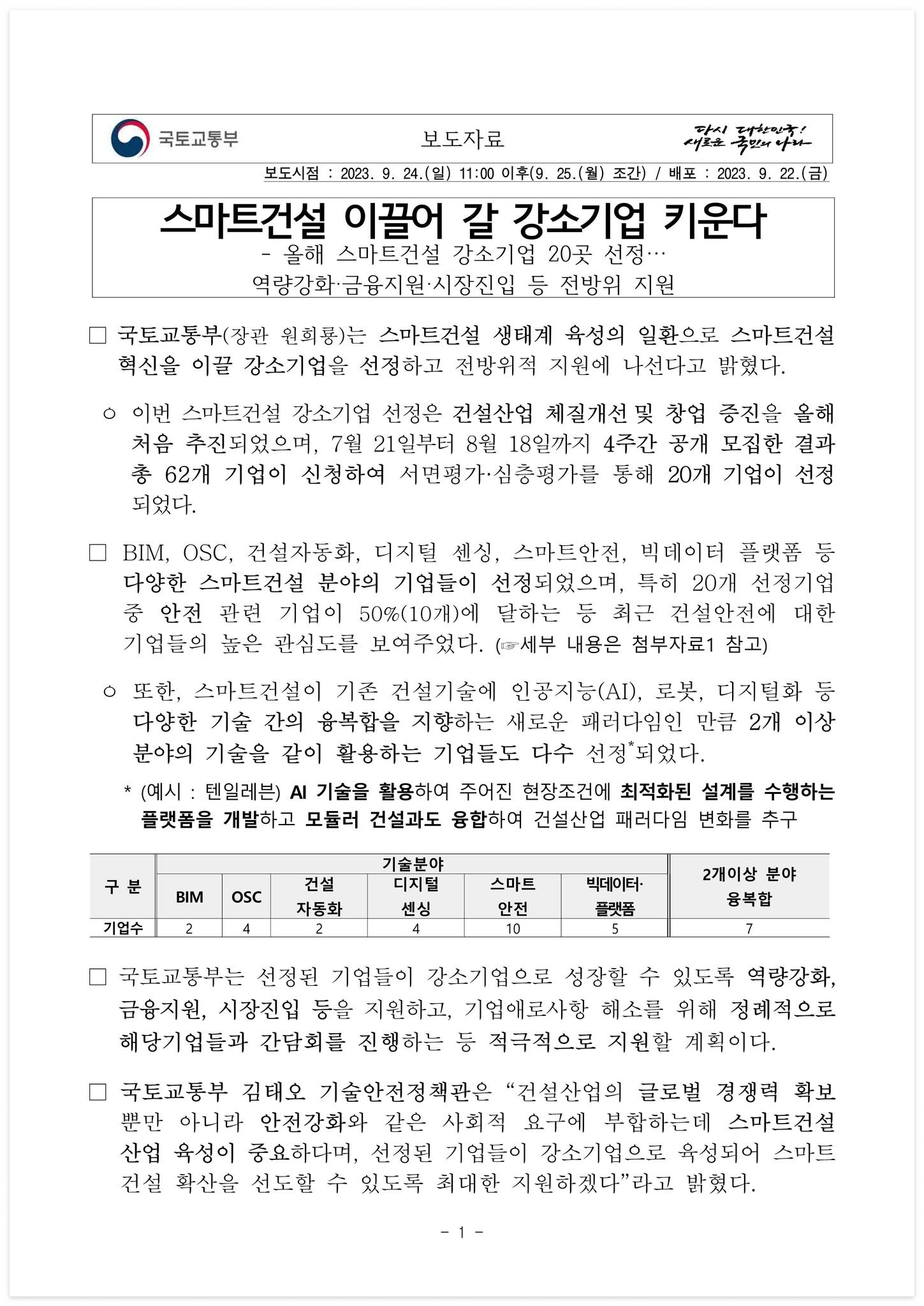 □ 자료 다운로드 : 230925(조간)_스마트건설_이끌어_갈_강소기업_키운다(기술정책과)