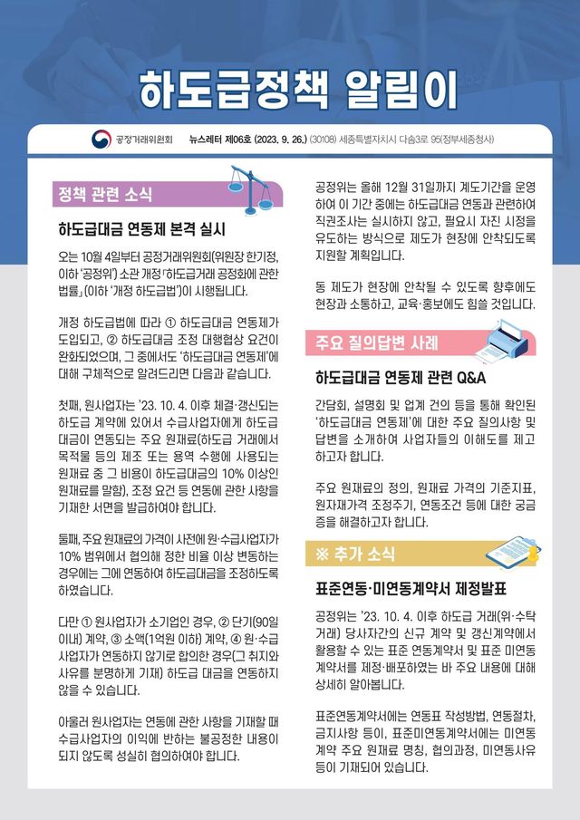 완화되었으며, 그 중에서도 ‘하도급대금 연동제’에 대해 구체적으로 알려드리면 다음과 같습니다.