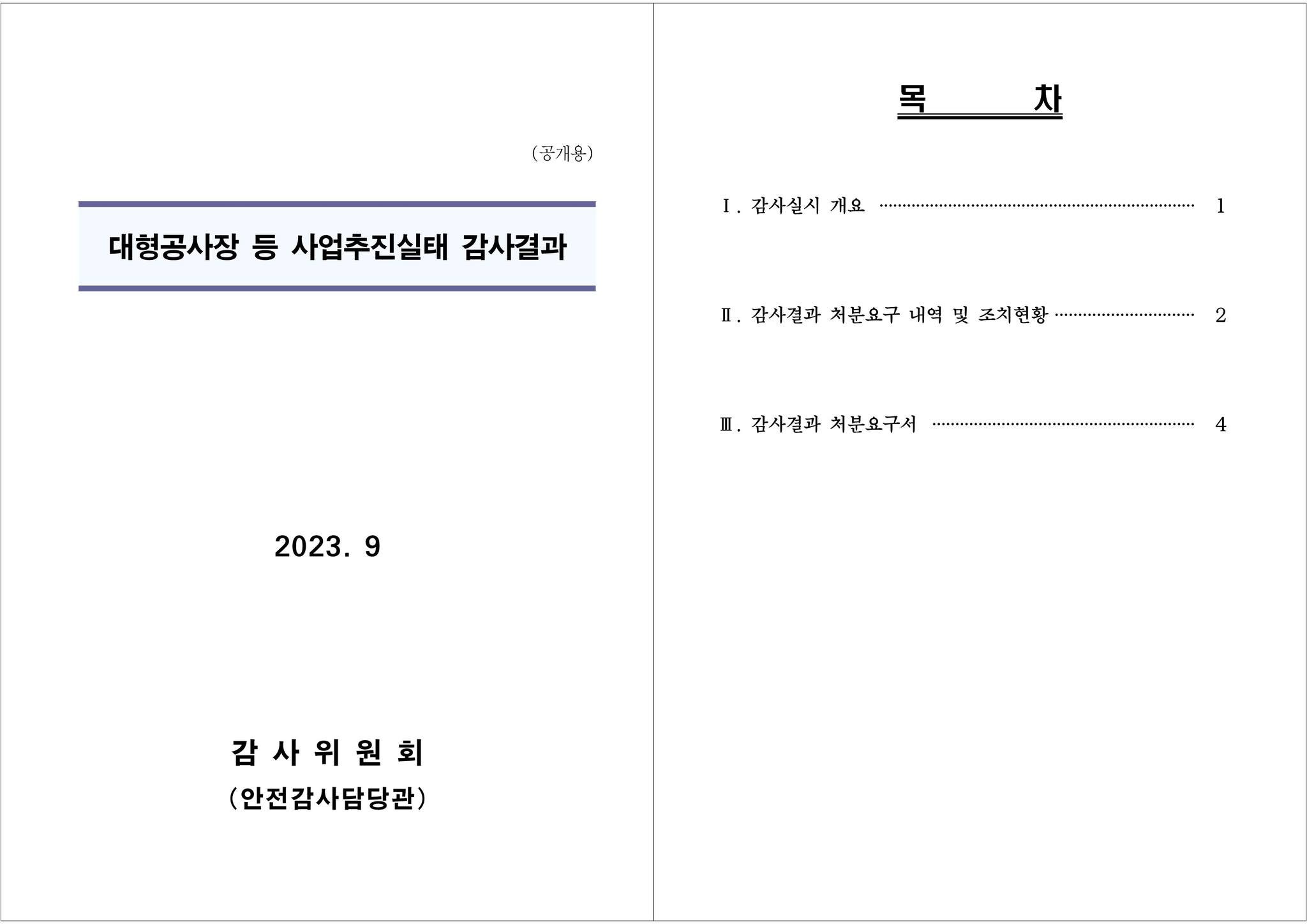 □ 제목 : 대형공사장 등 사업추진실태 감사결과