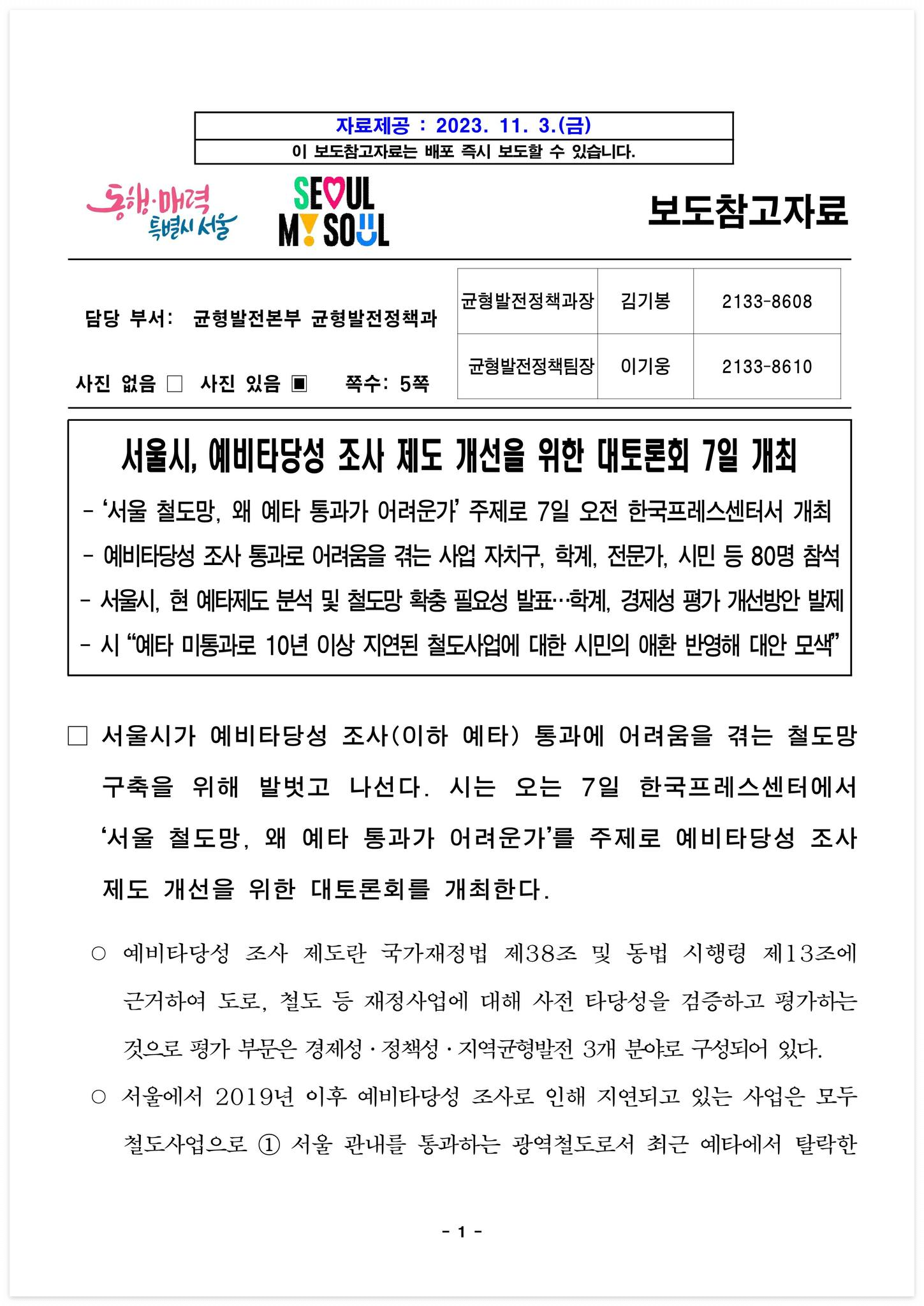 □ 자료 다운로드 : (보도참고자료) 서울시, 예비타당성 조사 제도 개선을 위한 대토론회 7일 개최