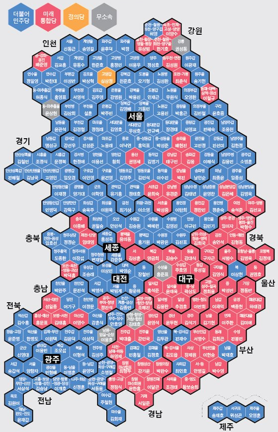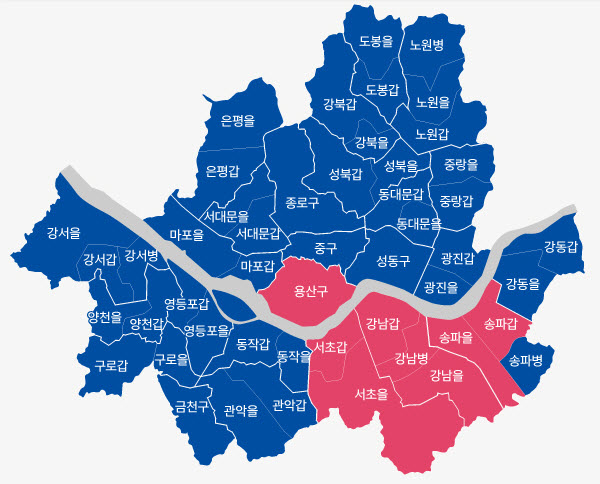 선거결과를 서울지역만 한정해서 정리하면 다음과 같습니다.