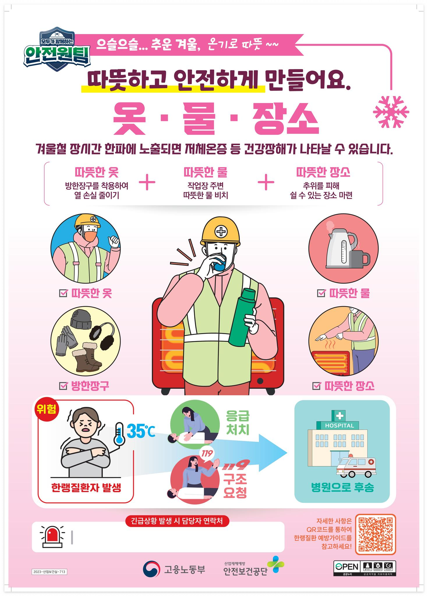 ※ 한랭질환 민감군과 작업강도가 높은 힘든 작업을 수행하는 근로자는 건강상태를 작업 전·후로 확인하는 것이 필요합니다.