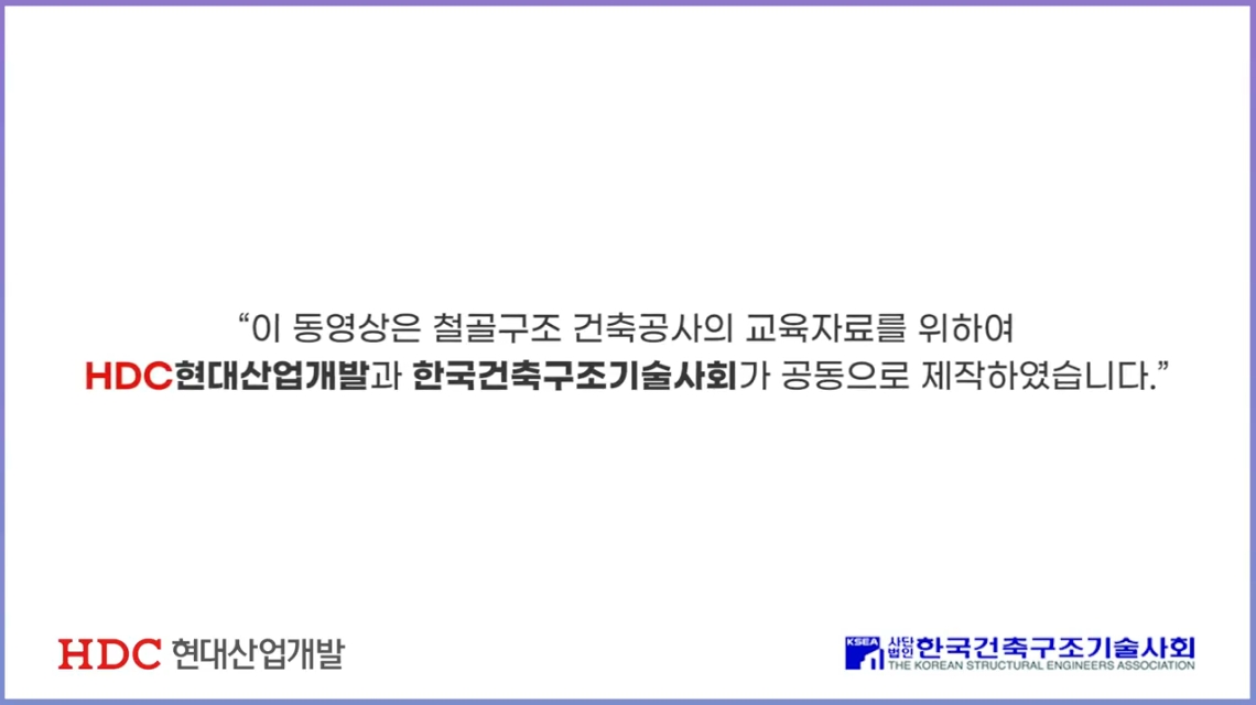 안녕하세요, 한국강구조학회 사무국입니다. HDC현대산업개발과 한국건축구조기술사회가 공동으로 개발한 '철골구조 건축공사 교육자료'를 아래와 같이 배포합니다. '철골구조 건축공사 교육