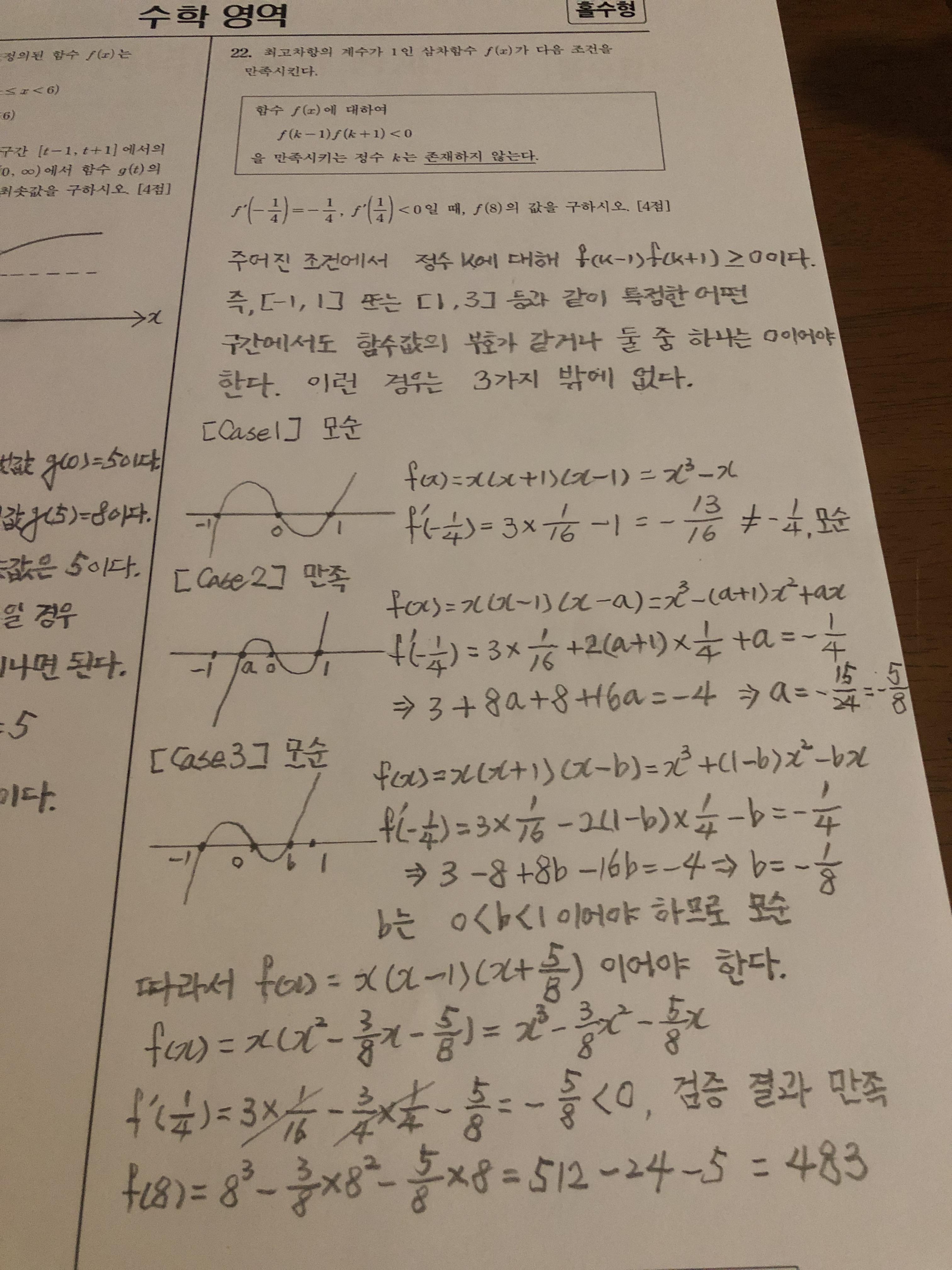 제가 못 풀었다고 아무도 못 풀었을 거라는 의미가 아니라 수능 수학을 이렇게 내면 거의 아무도 못 풀 거라고 생각합니다.