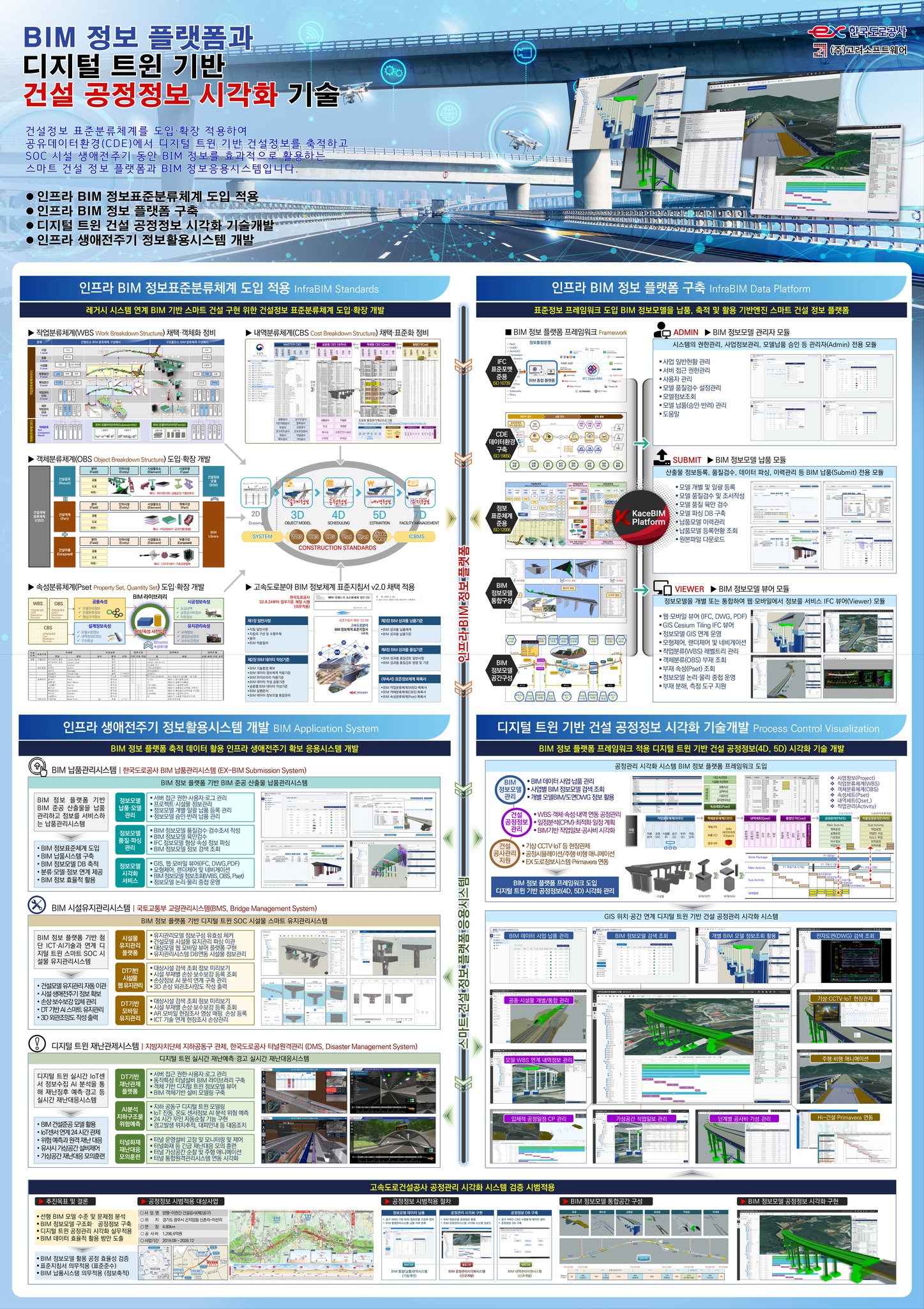 | 한국건설기술연구원장상 2 | 일반1 | 한국도로공사, ㈜고려소프트웨어 | BIM 정보 플랫폼과 디지털 트윈 기반 건설 공정정보 시각화 기술 |
