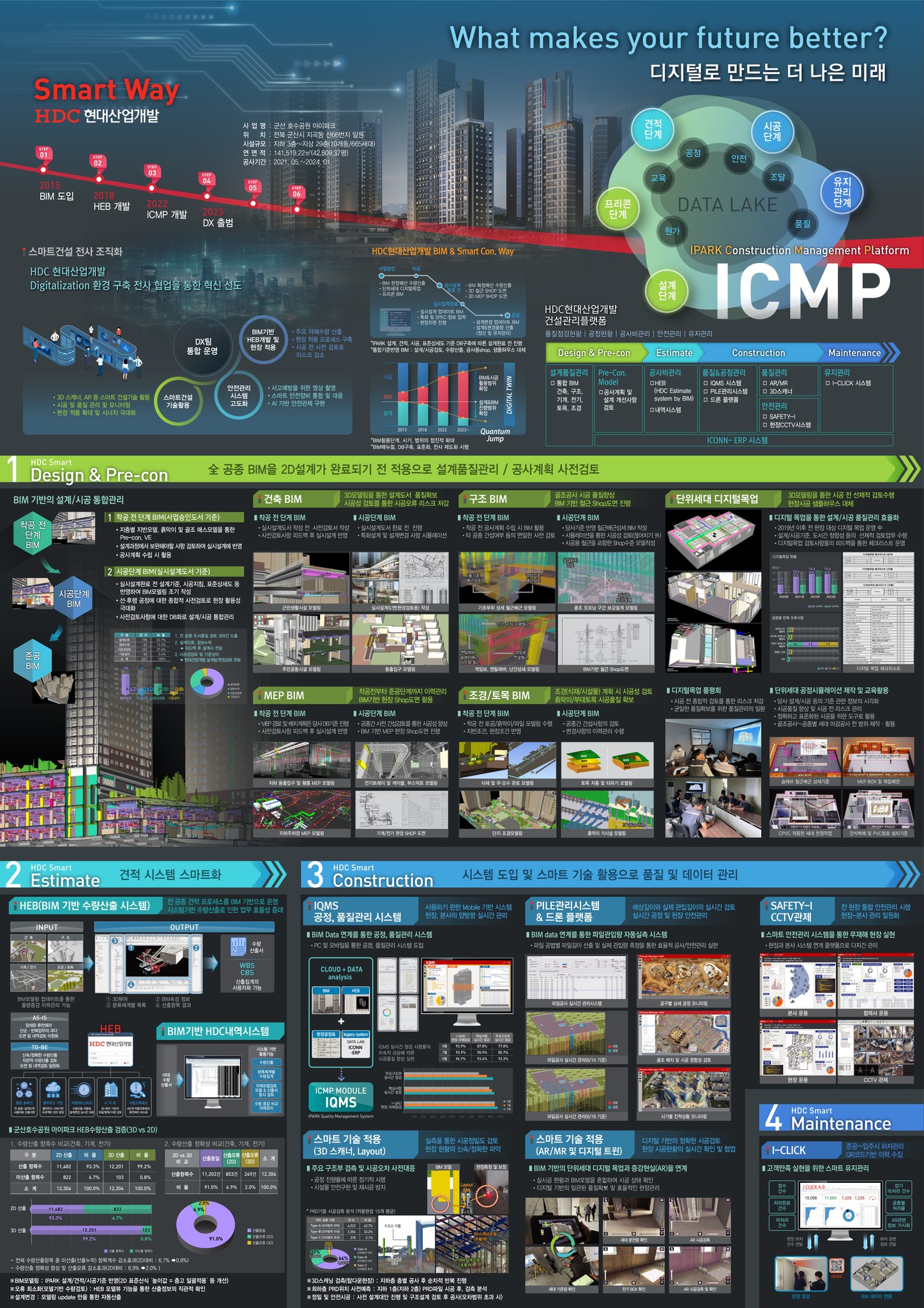 | 국토교통부 장관상 2 | 일반1 | HDC현대산업개발 주식회사, (주)빔파트너스 구조기술사사무소, (주)연우테크놀러지 | 디지털로 만드는 더 나은 미래 |