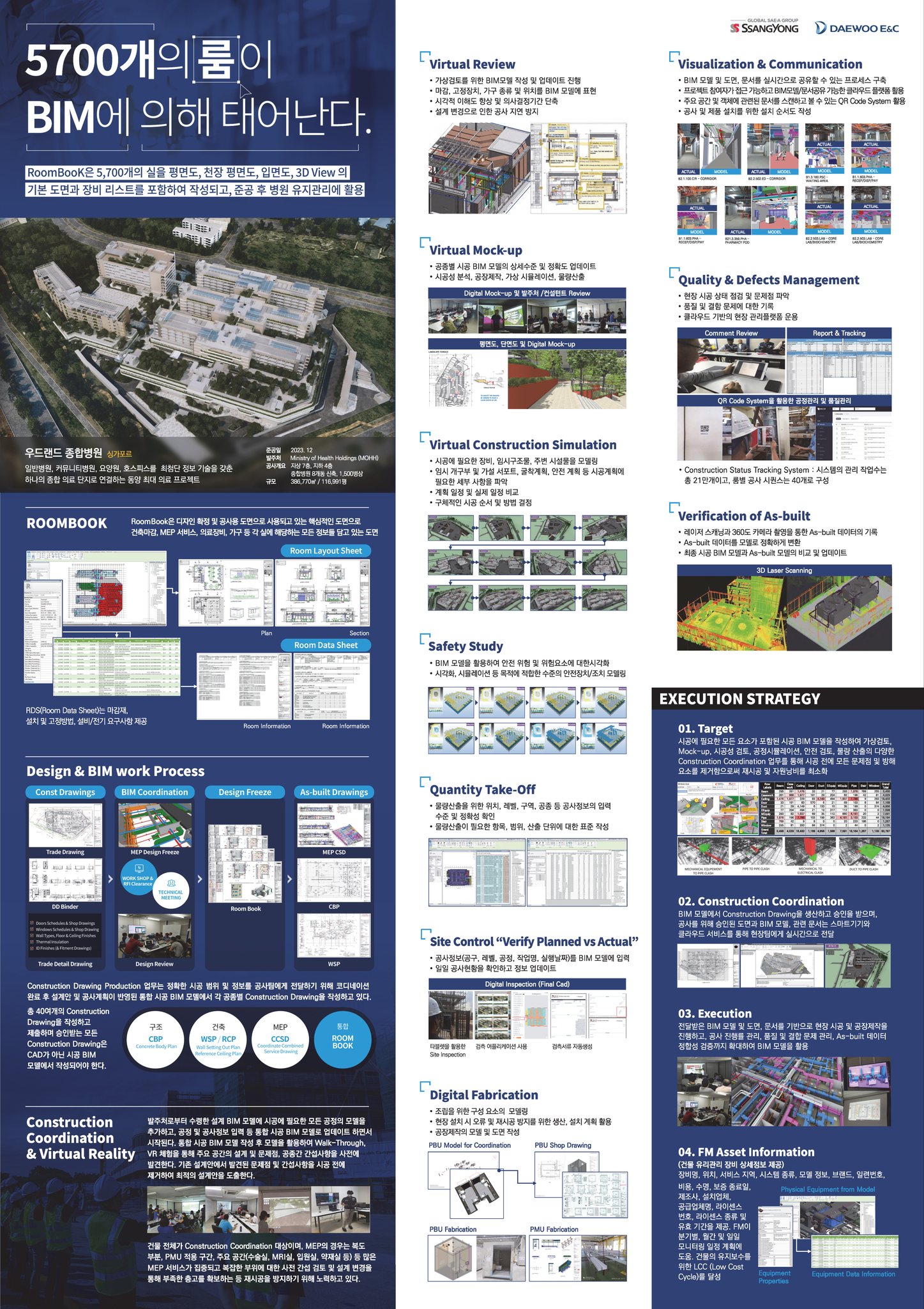 | 빌딩스마트협회장상 2 | 일반1 | 쌍용건설㈜, ㈜대우건설 | 5,700개의 룸이 BIM에 의해 태어나다 |