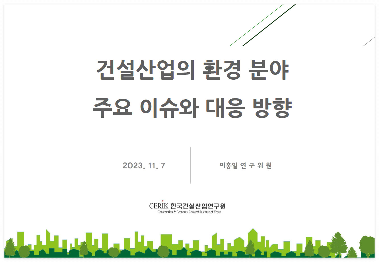 □ 자료 다운로드 : 제2주제_건설산업의 환경 분야의 주요이슈와 대응방향(이홍일)