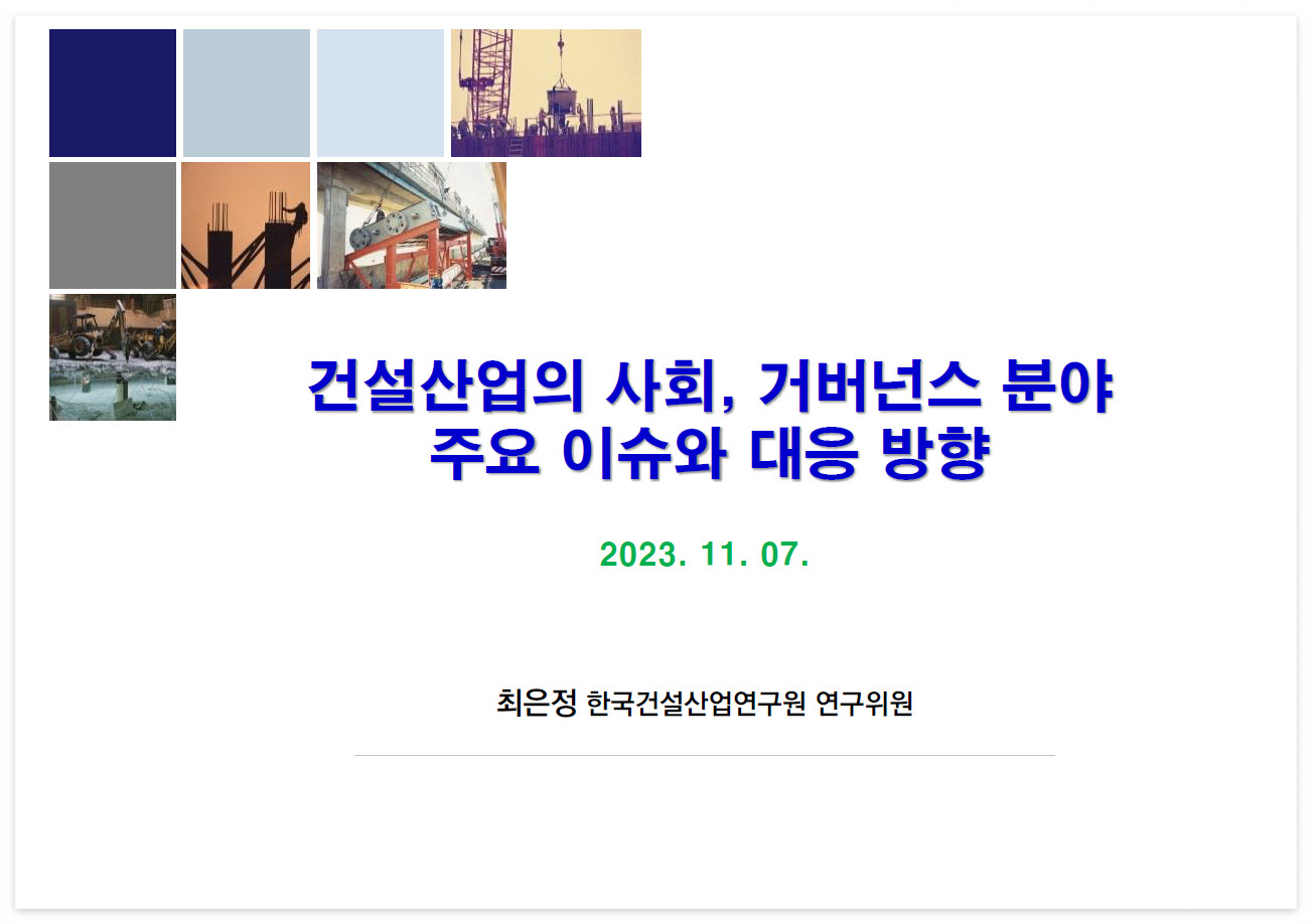 □ 자료 다운로드 : 제3주제_건설산업의 사회, 거버넌스 분야의 주요 이슈와 대응방향(최은정)