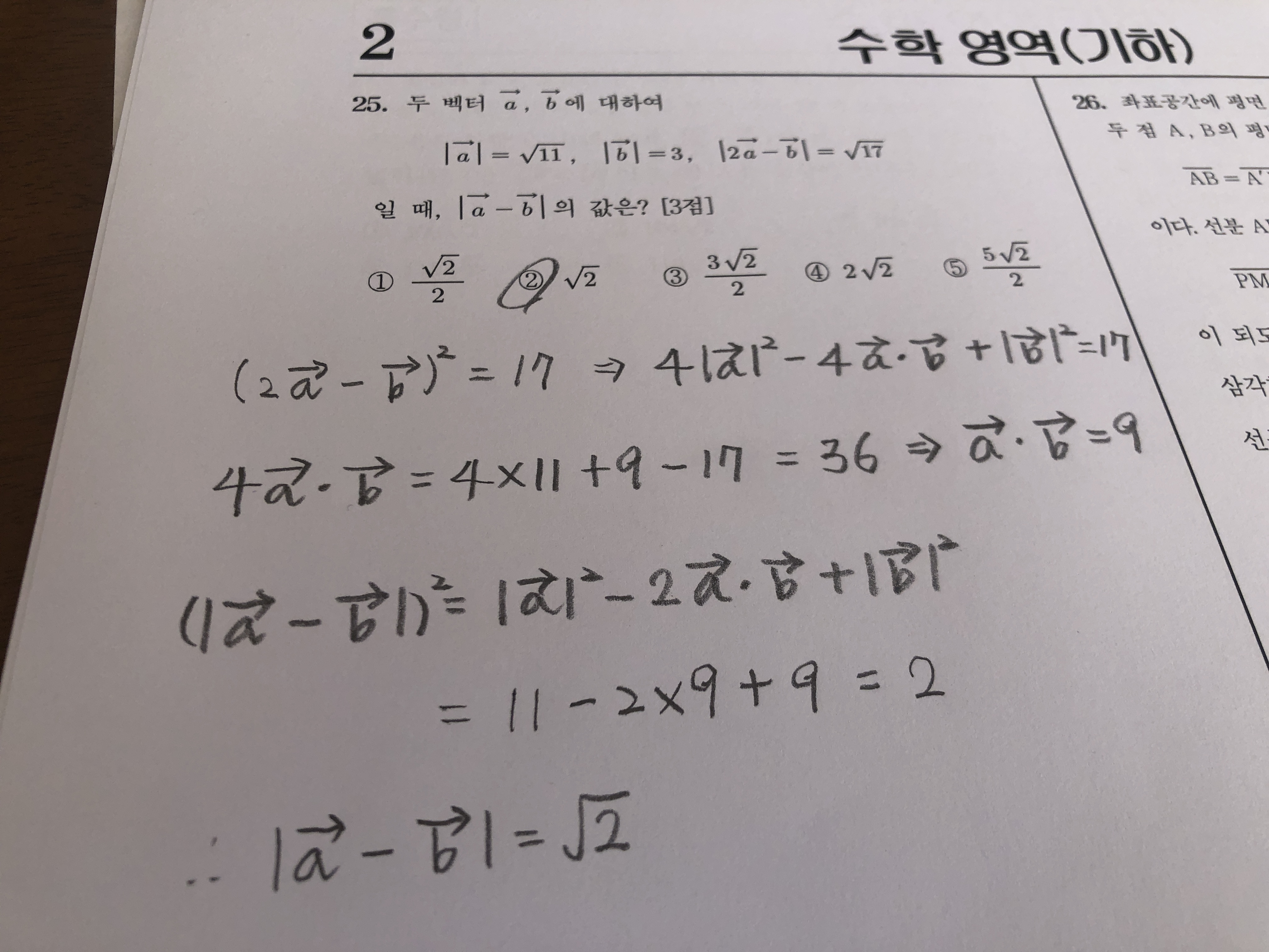 벡터 문제입니다. 벡터 문제는 크게 두 가지로 나눌 수 있습니다. 우리가 아는 벡터의 특징을 이용한 문제가 있는가 하면, 벡터 문제를 가장한 유사 벡터 문제가 있습니다. 25번 문제가 바로 유사 벡터 문제입니다.