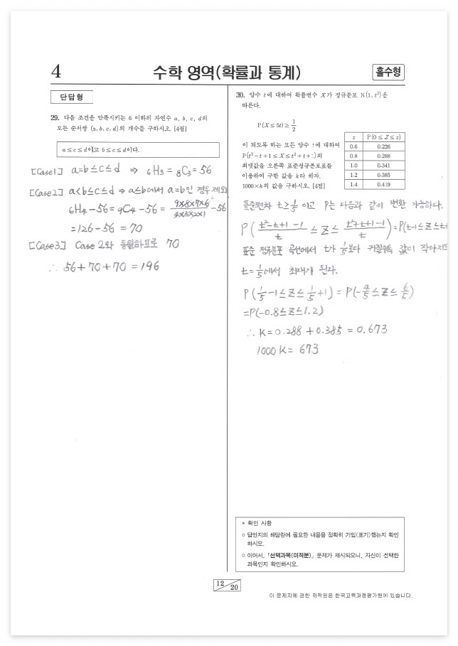 [엔지니어가 취미로 푸는 수학] 2024년 수능 수학 홀수형 확률과 통계 29번, 30번 문제 풀이 (tistory.com)