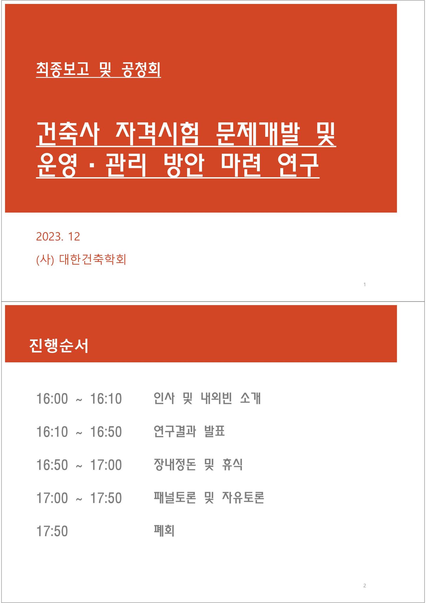 □ 제목 : 건축사 자격시험 문제개발 및 운영관리 방안 공청회 발표자료