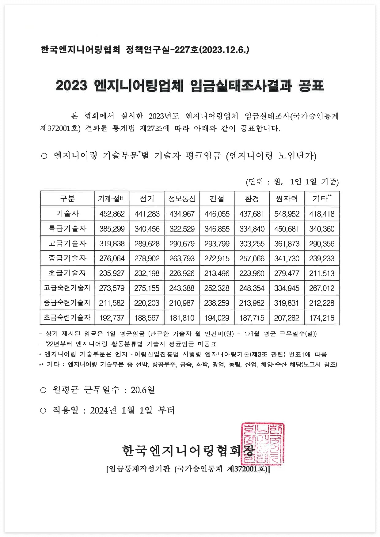 □ 자료 다운로드 : 2023년도 엔지니어링업체 임금실태조사 결과공표문