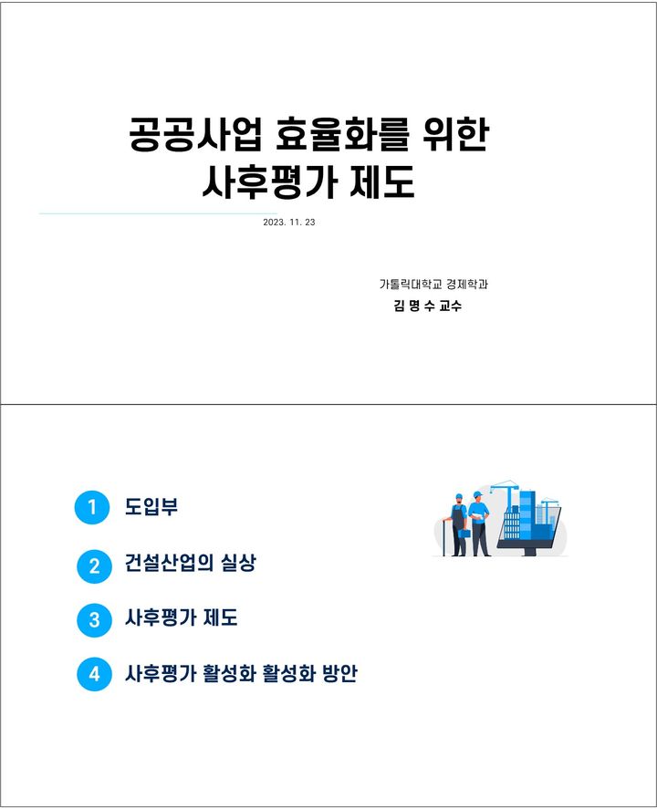 □ 제목 : '23 건설공사 사후평가 발전방안 및 사례발표회 자료