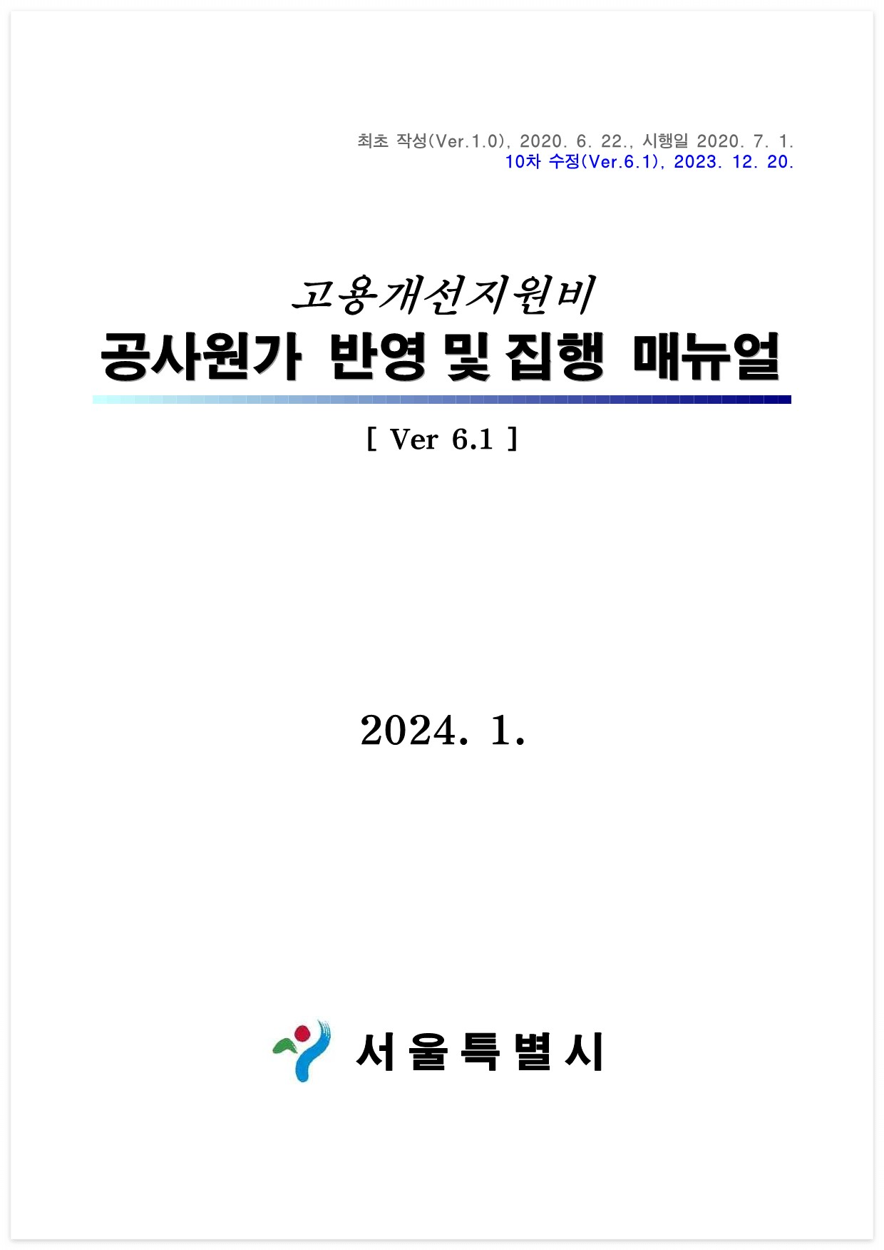 □ 제목 : 고용개선지원비 공사원가 반영 및 집행 매뉴얼(Ver.6.1)