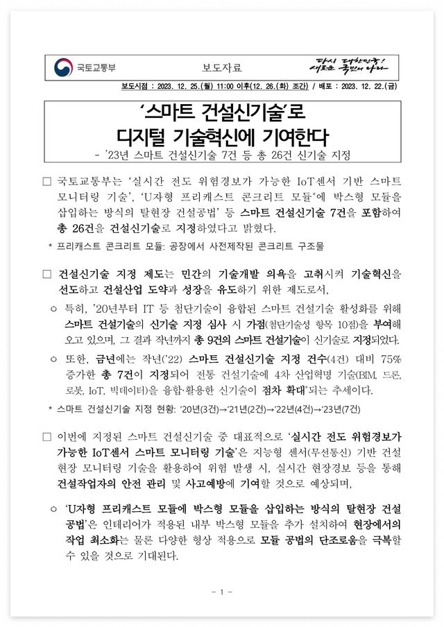 □ 자료 다운로드 : 231226(조간)_스마트_건설신기술로_디지털_기술혁신에_기여한다(기술정책과)