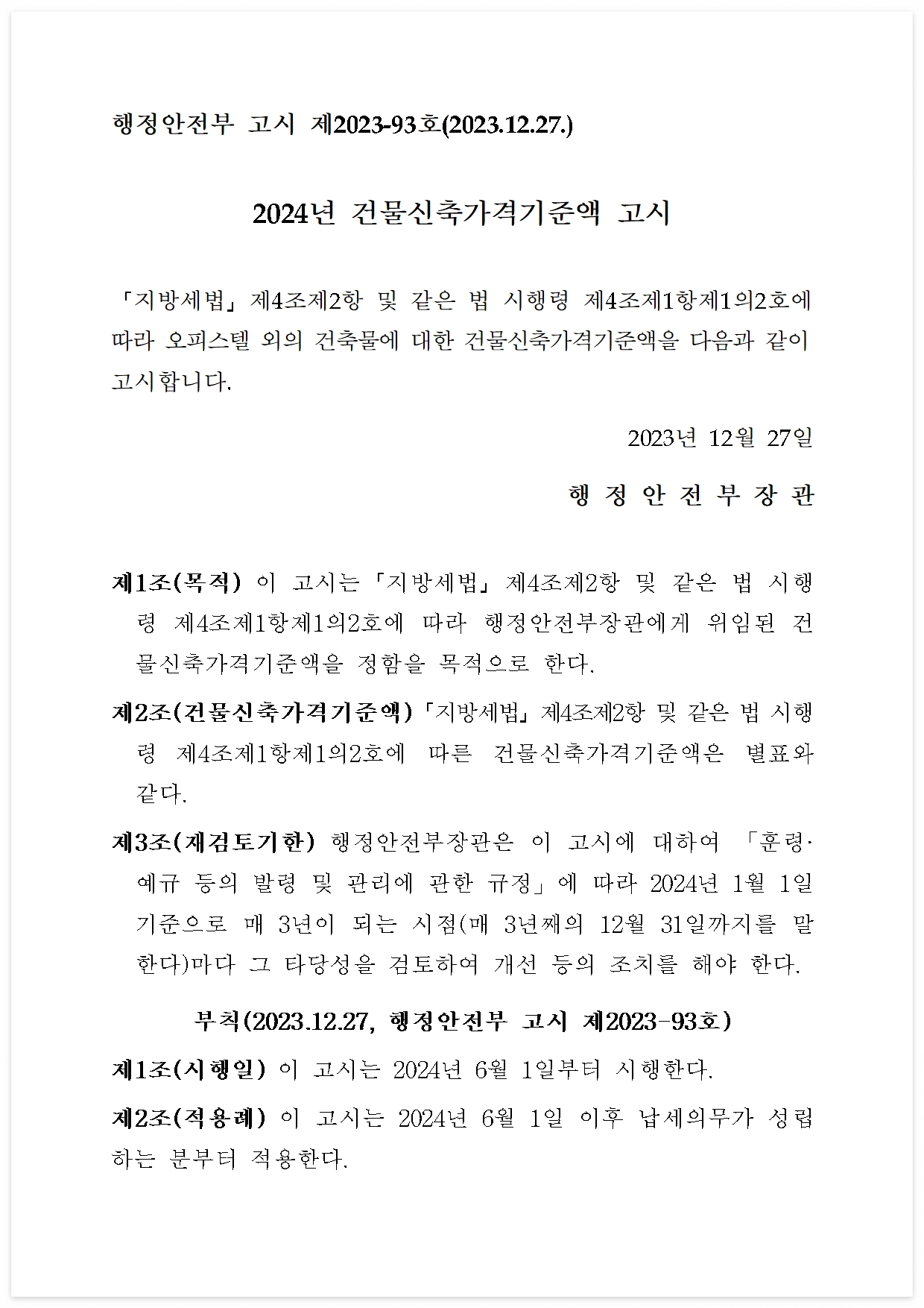 행정안전부 고시 제2023-93호(2023.12.27.)