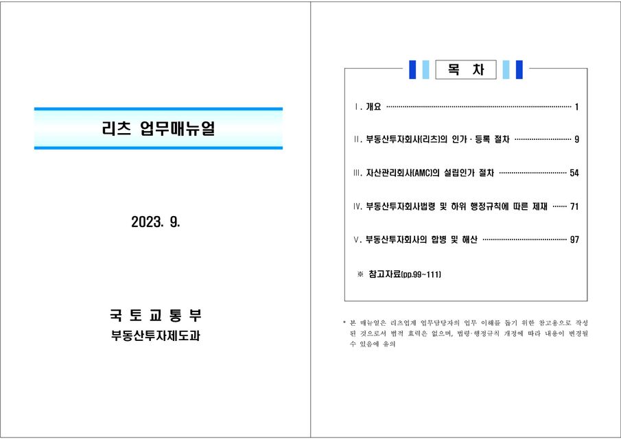 - 2023.08. 자산관리회사의 부동산투자회사 주식 취득 제한(30% 이내), 자산관리회사가 시정조치를 받은 경우 공시