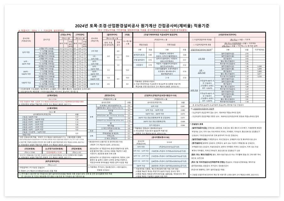 □ 제목 : 2024년 조달청 시설공사 원가계산 간접공사비율(제비율) 적용기준