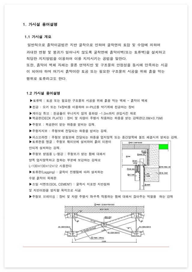또한, 흙막이 벽체 자체는 물론 연약지반 및 구조물의 안정성을 동시에 만족하는 시공이 되어야 하며 여기서 흙막이란 토공 또는 필요한 구조물의 시공을 위해 흙을 막는 행위로 토류라고도 한다.